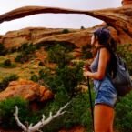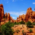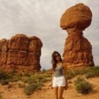 Nos levantamos temprano para aprovechar la temperatura de la mañana ya que sabíamos que en Arches el calor suele ser abrumador. Por suerte nos tocó un día seminublado atípico. Para ver la mayoría de los arcos naturales que caracterizan a este parque hay que realizar caminatas cortas, exceptuando al Delicated Arch que para llegar hasta él hay que caminar alrededor de dos horas ida y vuelta.