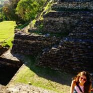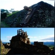 Continuando por caminos sinuosos con casas y ranchos precarios, llegamos a un precioso y verde valle donde se ubican las ruinas, no tan conocidas como las de Palenque, pero que varias personas nos habían recomendado. Ante nuestro primer vistazo quedamos sorprendidos por esta ciudad construida en las alturas de la montaña. Comenzamos el recorrido pudiendo ingresar y caminar por los estrechos pasadizos de una de las edificaciones que según nos explicaron, había cumplido el papel de un “hospital”. Luego visitamos lo que antiguamente fueron habitaciones, con sus respectivas camas de piedra. Y fuimos ascendiendo lentamente hasta llegar a la cima, en la que están ubicadas las pirámides del sol y de la luna, a las cuales también se puede subir. La vista de todo el valle desde ahí arriba no tiene precio.