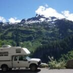 Volviendo a Mount Rainier, pasamos la noche a metros del parque en lo que sería un camping estatal donde se paga la estadía a voluntad. Estábamos medio perdidos, pero nos recibió un señor que estaba parando ahí, de edad avanzada, nada tonto ya que su motorhome tenía la mejor vista del camping. Nos explicó como estaba distribuido el lugar y donde era mejor quedarse. No paraba de hablarnos de su vida, de como se había retirado del ejército, que era viudo hacía 15 años, y pese a sus 86 años de edad, continuaba acampando en este tipo de lugares. Una vez asentados en uno de los lotes, mientras estábamos haciendo un fueguito con piñas y ramas de la zona, se nos acercó en bicicleta otro señor que también estaba solo. Se nos puso a charlar y a chusmear sobre los vecinos del camping y al final nos brindó agua, ya que andábamos medio cortos. Lo invitamos a comer con nosotros, pero como de costumbre: ya había cenado y era la hora de acostarse (horario yanqui al cual nunca logramos adaptarnos).