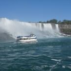 Llegamos a las ansiadas cataratas del Niagara a eso de las 5 de la tarde de un día soleado. Sin poder pasar al lado canadiense por no tener la visa, compramos los tickets para el barco que te acerca a la majestuosa herradura de cataratas que comparten ambos países. Luego del recorrido en barco que dura alrededor de media hora caminamos todas las pasarelas con distintas vistas a las cataratas. Si bien no íbamos con muchas expectativas ya que ambos conocíamos las cataratas del Iguazú, éstas no dejaron de sorprendernos, ya que el color del agua verde azulado sumado al gran caudal que se ve caer resultan impactantes.